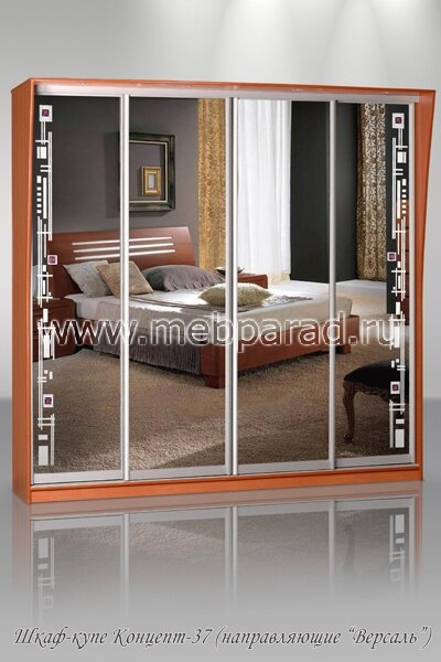 Шкаф-купе "Концепт - 37" имеет раздвижные двери и особенно понравится любителям стиля хай-тек. Подобрав наиболее удачное сочетание цвета и фактуры материалов, Вы получите идеальный шкаф для Вашей комнаты или прихожей. Модель удобна и вместительна, изготовлена из экологически чистых качественных материалов. Красивый по дизайну, наличие зеркал поможет визуально увеличить пространство. Направляющие "Versal" (золото, серебро, бронза, шампань), при изготовлении с направляющими в цвет шкафа необходимо прибавить + 1500 руб. Производится с использованием комплектующих из анодированного алюминиевого профиля. Усовершенствованная конструкция роликов и направляющих обеспечивает бесшумный и плавный ход дверей.
