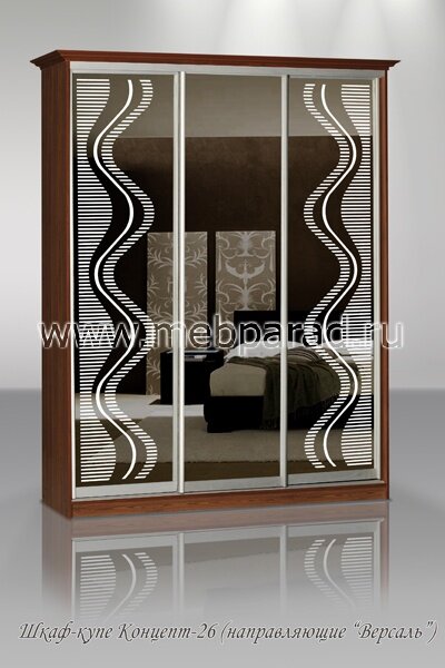 Шкаф-купе "Концепт - 26" имеет раздвижные двери и особенно понравится любителям стиля хай-тек. Подобрав наиболее удачное сочетание цвета и фактуры материалов, Вы получите идеальный шкаф для Вашей комнаты или прихожей. Модель удобна и вместительна, изготовлена из экологически чистых качественных материалов. Красивый по дизайну, наличие зеркал поможет визуально увеличить пространство. Направляющие "Versal" (золото, серебро, бронза, шампань), при изготовлении с направляющими в цвет шкафа необходимо прибавить + 1500 руб. Производится с использованием комплектующих из анодированного алюминиевого профиля. Усовершенствованная конструкция роликов и направляющих обеспечивает бесшумный и плавный ход дверей.