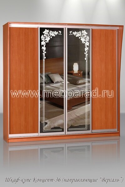 Шкаф-купе "Концепт - 36" имеет раздвижные двери и особенно понравится любителям стиля хай-тек. Подобрав наиболее удачное сочетание цвета и фактуры материалов, Вы получите идеальный шкаф для Вашей комнаты или прихожей. Модель удобна и вместительна, изготовлена из экологически чистых качественных материалов. Красивый по дизайну, наличие зеркал поможет визуально увеличить пространство. Направляющие "Versal" (золото, серебро, бронза, шампань), при изготовлении с направляющими в цвет шкафа необходимо прибавить + 1500 руб. Производится с использованием комплектующих из анодированного алюминиевого профиля. Усовершенствованная конструкция роликов и направляющих обеспечивает бесшумный и плавный ход дверей.