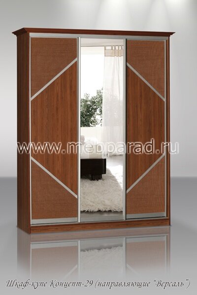 Шкаф-купе "Концепт - 29" имеет раздвижные двери и особенно понравится любителям стиля хай-тек. Подобрав наиболее удачное сочетание цвета и фактуры материалов, Вы получите идеальный шкаф для Вашей комнаты или прихожей. Модель удобна и вместительна, изготовлена из экологически чистых качественных материалов. Направляющие "Versal" (золото, серебро, бронза, шампань), при изготовлении с направляющими в цвет шкафа необходимо прибавить + 1500 руб. Производится с использованием комплектующих из анодированного алюминиевого профиля. Усовершенствованная конструкция роликов и направляющих обеспечивает бесшумный и плавный ход дверей.