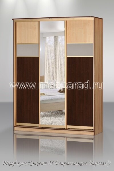 Шкаф-купе "Концепт - 25"имеет раздвижные двери и особенно понравится любителям стиля хай-тек. Подобрав наиболее удачное сочетание цвета и фактуры материалов, Вы получите идеальный шкаф для Вашей комнаты или прихожей. Модель удобна и вместительна, изготовлена из экологически чистых качественных материалов. Направляющие "Versal" (золото, серебро, бронза, шампань), при изготовлении с направляющими в цвет шкафа необходимо прибавить + 1500 руб. Производится с использованием комплектующих из анодированного алюминиевого профиля. Усовершенствованная конструкция роликов и направляющих обеспечивает бесшумный и плавный ход дверей.