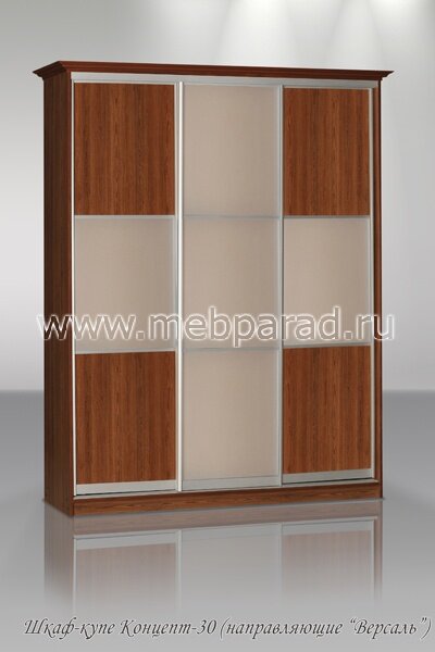 Шкаф-купе "Концепт - 30" имеет раздвижные двери и особенно понравится любителям стиля хай-тек. Подобрав наиболее удачное сочетание цвета и фактуры материалов, Вы получите идеальный шкаф для Вашей комнаты или прихожей. Модель удобна и вместительна, изготовлена из экологически чистых качественных материалов. Направляющие "Versal" (золото, серебро, бронза, шампань), при изготовлении с направляющими в цвет шкафа необходимо прибавить + 1500 руб. Производится с использованием комплектующих из анодированного алюминиевого профиля. Усовершенствованная конструкция роликов и направляющих обеспечивает бесшумный и плавный ход дверей.