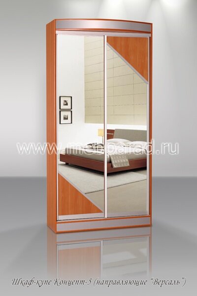 Шкаф-купе "Концепт - 5" имеет раздвижные двери и особенно понравится любителям стиля хай-тек. Подобрав наиболее удачное сочетание цвета и фактуры материалов, Вы получите идеальный шкаф для Вашей комнаты или прихожей. Модель удобна и вместительна, изготовлена из экологически чистых качественных материалов. Красивый по дизайну, наличие зеркал поможет визуально увеличить пространство. Направляющие "Versal" (золото, серебро, бронза, шампань), при изготовлении с направляющими в цвет шкафа необходимо прибавить + 1500 руб. Производится с использованием комплектующих из анодированного алюминиевого профиля. Усовершенствованная конструкция роликов и направляющих обеспечивает бесшумный и плавный ход дверей.