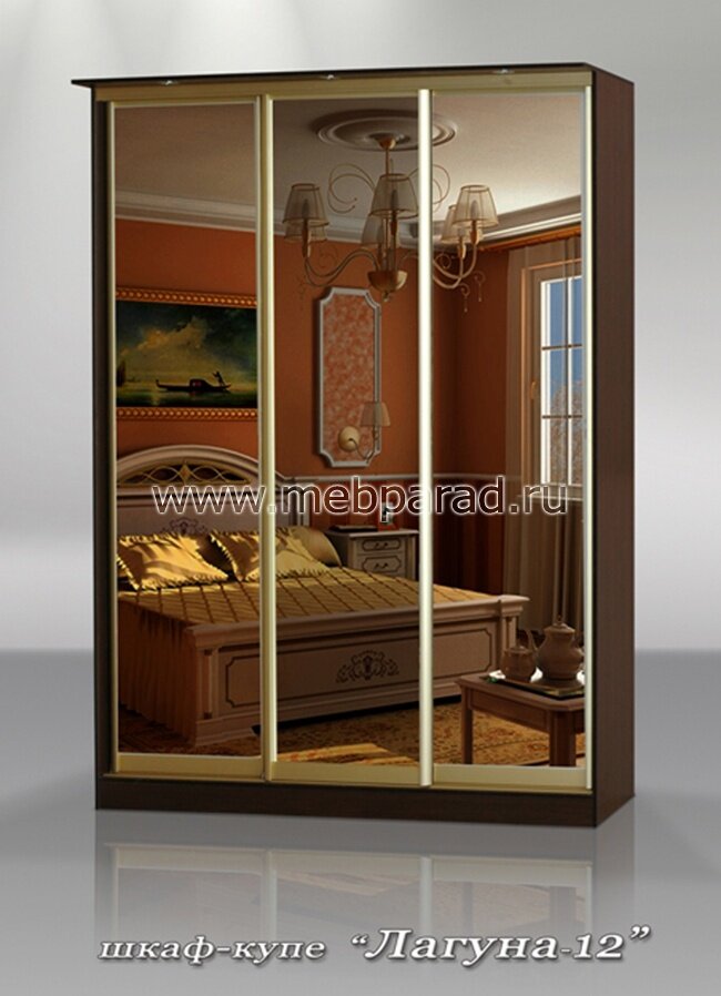 Шкаф-купе "Лагуна 12" выполнен современном стиле. Имеет раздвижные двери. Цвет ламинированного ДСП можно выбрать по Вашему усмотрению, в зависимости от интерьера Вашего дома. Зеркальные двери шкафа выгодно увеличат площадь помещения, где он будет находиться. Направляющие системы "Versal" - это гарантия качества и долговечности (цвет: золото, серебро, шампань, бронза), при изготовлении с направляющими в цвет шкафа необходимо прибавить + 1500 руб. Усовершенствованная конструкция роликов и направляющих обеспечивает бесшумный и плавный ход дверей. Наполнение шкафа-купе можно выбрать из вариантов представленных на нашем сайте или проконсультировавшись у диспетчера.
